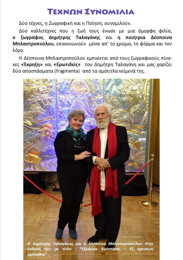 Η τέχνη της Ποίησης και η τέχνη της Ζωγραφικής συνομιλούν μέσα από τα έργα των δύο καλλιτεχνών στο αφιέρωμα αυτό με τίτλο "Τεχνών Συνομιλία".